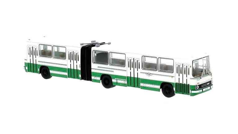 Масштабная модель городского сочленённого автобуса Икарус 280.02 особо-большой вместимости (бело-зелёный цвет) произведена в полном соответствии оригиналу в историческом и техническом плане. Окраска модели не требуется. Рекомендуется для железнодорожных макетов, диорам и миниатюр в масштабе 1/87 типоразмера H0.