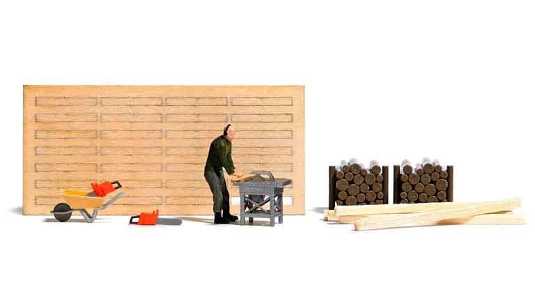 Масштабный набор «Рабочий, тачка, доски, лесоматериалы и циркулярная пила» рекомендуется для диорам в масштабе 1/87 и железнодорожных макетов типоразмера Н0 (1:87). В наборе: рабочий, тачка, деревянные доски, кучей дерева, лесоматериалы и бензопила. Окраска моделей не требуется.