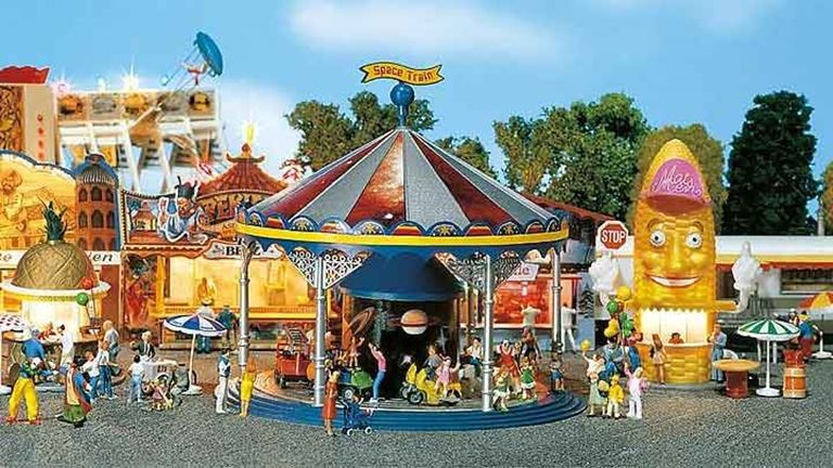 Масштабная модель детской карусели с двигателем (12-16 В) из цветного пластика для самостоятельной сборки. Окраска модели не требуется. Размеры: Ø 125 × 115 мм. Клей в набор не входит. Рекомендуется для диорам в масштабе 1/87 и железнодорожных макетов типоразмера Н0 (1:87).
