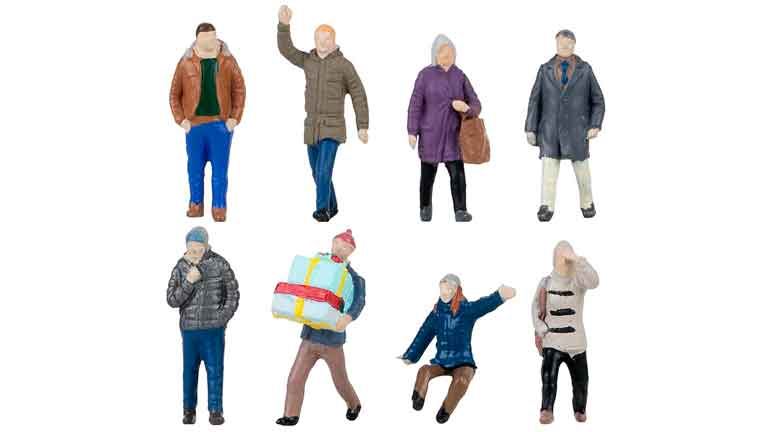 Туристы в зимней одежде (8 фигурок), 1:87