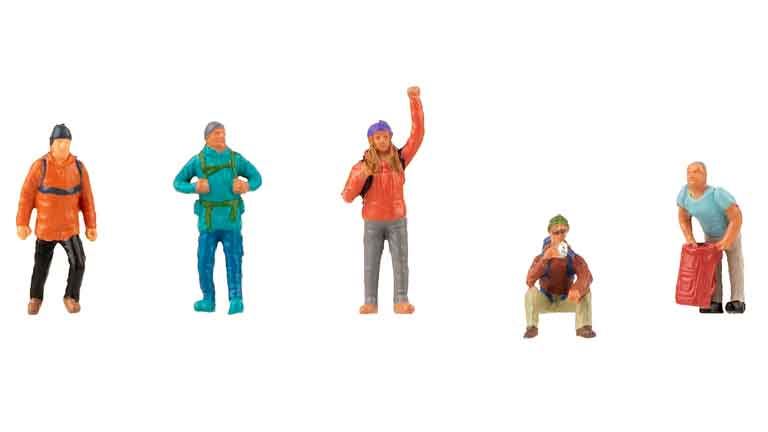 Масштабный модельный набор из окрашенных фигурок «Туристы в горах» из пластика рекомендуется для диорам в масштабе 1/87 и железнодорожных макетов типоразмера Н0 (1:87). Окраска фигур не требуется (цвет, ассортимент и дизайн может отличаться от представленного на иллюстрации). Для установки фигурок рекомендуется использовать термоклей.