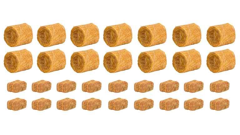Коллекционный набор «14 круглых и 18 квадратных тюков сена» рекомендуется для диорам в масштабе 1/72—1/100 и железнодорожных макетов типоразмера Н0 (1:87). Окраска не требуется.