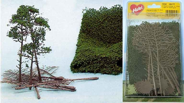 Масштабные модели хвойных деревьев для самостоятельной сборки. В наборе 10 каркасов сосен высотой ~100—160 мм и хвоя (фолиаж). Рекомендуется для диорам в масштабе 1/72—1/120 и железнодорожных макетов типоразмера H0 (1:87) и TT (1:120). Для установки деревьев рекомендуется использовать клей.