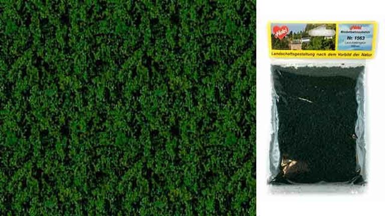 Имитация растительности (фолиаж - полиуретановая пена, мелкая) «Тёмно-зелёная растительность (Сосновая хвоя)». Упаковка ~20 г, объём 200 мл. Рекомендуется для создания деревьев, кустов, живых изгородей и многой другой растительности размещаемой на диорамах в масштабах 1/35, 1/72, 1/87, 1/100, 1/250, архитектурных макетах 1:35—1:250, железнодорожных макетах и миниатюрах типоразмера G (1:22,5), 0 (1:45), H0 (1:87), TT (1:120), N (1:160), Z (1:220).