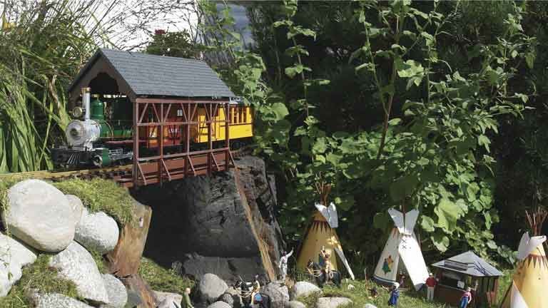Масштабная модель «Крытый мост» из цветного пластика для самостоятельной сборки. Окраска модели не требуется. Размеры: ~520 × 210 × 290 мм. Клей в набор не входит. Рекомендуется для диорам и железнодорожных макетов в масштабе 1:22,5 типоразмера G.