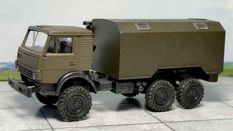 Коллекционная модель «КУНГ-К4320 (тип 2) на базе автомобиля КабАЗ» из пластика рекомендуется для диорам в масштабе 1/87 и железнодорожных макетов типоразмера Н0 (1:87). Окраска модели не требуется.